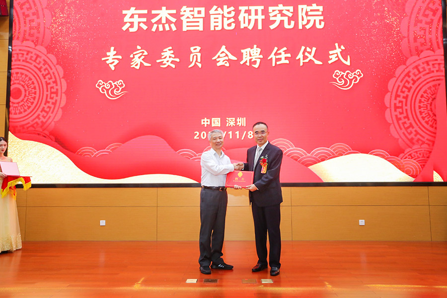 東杰智能研究院院長周受欽先生為專家委員會委員頒發聘任證書。專家委員會由中國工程院院士、長江學者和國家杰青等二十余位國內行業知名專家組成。
